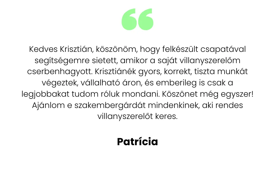 (Belső szerelésekre sajnos nem tudunk rendelést felvenni, amennyiben konnektorral, lámpával, csengővel, bojlerrel, kaputelefonnal és egyéb belső hálózattal kapcsolatos problémád van, kérjük, hogy keress másik kollégát!)